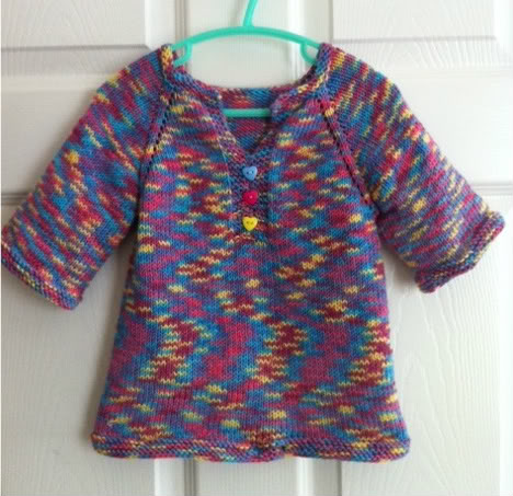 Per cui avendo solo un gomitolo di “quel”rosa che fare? ma un topdown naturalmente, che,cominciando dall’alto, ma tutt’assieme, maniche comprese, quando finisce la lana lo fa in modo..simmetrico, ad uguale livello per tutte le parti, e infatti come si può vedere dalla foto finito il gomitolo sono andata a vanti con quella tutta colorata(Knitcol di Adriafil) a cui ho tolto le parti in arancio; la lana in questione non è solo sfumata ha proprio dei metri di un colore e dei metri in altri colori, per cui..