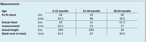 Lunghezza tot presa al centro del dietro: 38 (40.5, 43, 45.5) cm]
