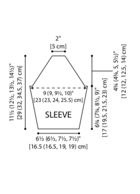 Proseguire a m rasata fino a 17 (19.5, 21.5, 23) cm dall’inizio finendo con un f sul rov del lav.