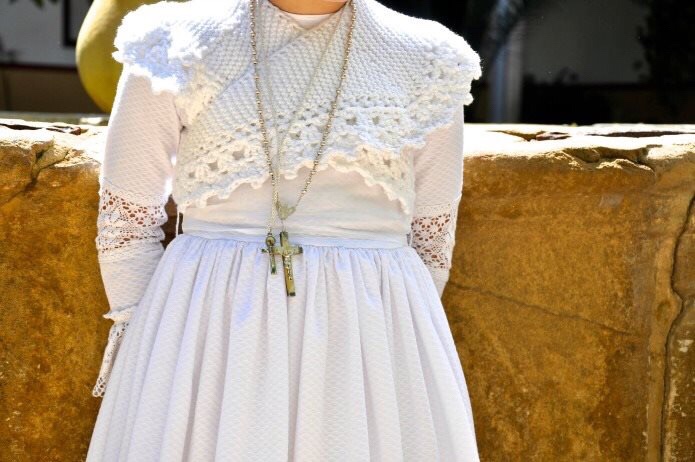 e sabato mattina prima comunione di Flavia.. bellissima con il coprispalle fatto dalla nonna.. naturalmente!