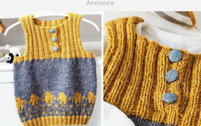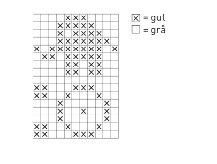 Al primo giro diminuire le m m fino a 99 (110) 121 m.( lav due m ass al dir distribuite lungo il giro) Dopo 3 giri lavorare il motivo degli elefanti secondo il diagramma. Quindi proseguire dritto fino a quando il lavoro misura 15 (18) 21 cm. Passare ai ferri 3 mm e il giallo. Lavorare 1 giro mentre contemporaneamente è aumentare / diminuire uniformemente a 104 (112) 120 m. Mettere un marker ai lati . Continuare a coste: