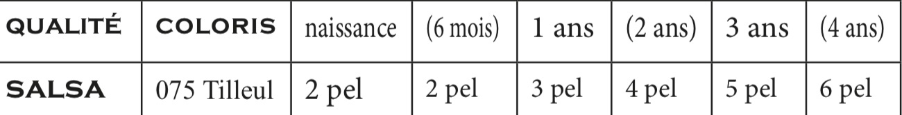 Poi cont sulle 77-83-89-95 m. restanti. SPALLE E SCOLLO: A 29-32-35-38 cm (110-120-132-144 ferri ) per le spalle chiudere ai lati ogni 2 ferri: 4 anni: 3 x 6 m. 6 anni: 2 x 6 m.1 x 7 m. 8 anni: 3 x 7 m. 10 anni: 2 x 7 m. 1 x 8 m. e allo stesso tempo della prima diminuzioni delle spalle per lo scollo chiudere le 37-41-43-47 m. centrali, continuare a lav ogni lato separatamente chiudendo ai lati dello scollo 1 x 2 m. DAVANTI SINISTRO : Montare 57-61-67-71 m. lav 55-59- 65-69 m. a p fantasia , 2 m. di bordo . SCALFO: A 15-17-19-21 cm (58-64-72-80 ferri) chiudere a destra come fatto dietro poi cont 44-46-50-53 m. restanti. SBIECO DELLO SCOLLO: A 23-26-28-31 cm (88-98-106-118 ferri ) a sinistra chiudere ogni 2 ferri (le dim di 2 m si fanno a 2 m dal bordo ) : 4 anni et 6 anni: 1 x 6-7 m., 10 x 2 m. 8 anni et 10 anni : 1 x 5-7 m, 12 x 2 m. SPALLA : Chiudete a destra come fatto dietro . DAVANTI DESTRO: Montare 57-61-67-71 m. Lav 2 m. di bordo , 55-59-65-69 m. a p fantasia . SCALFO : A 15-17-19-21 cm (58-64-72-80 ferri chiudere a sin come fatto dietro poi cont sulle 44-46-50-53 m.restanti