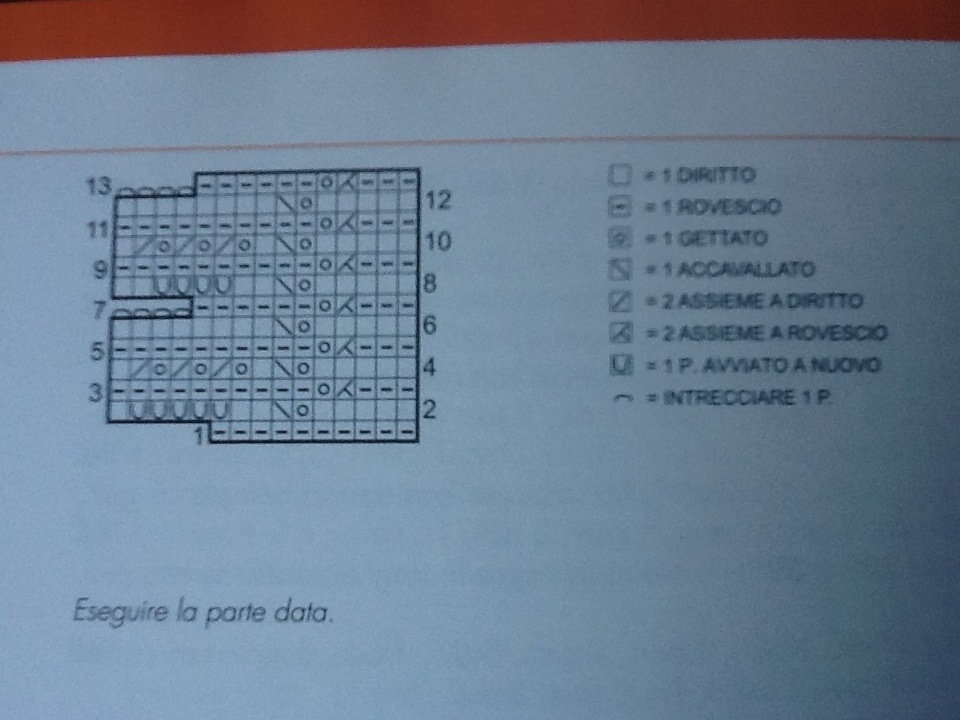 ferro 1 (dir del lav): 3 dir[4, 5], * lav lo schema,13 dir[13, 13]*; rip altre 2 volte, lav lo schema,3 dir(4-5).
