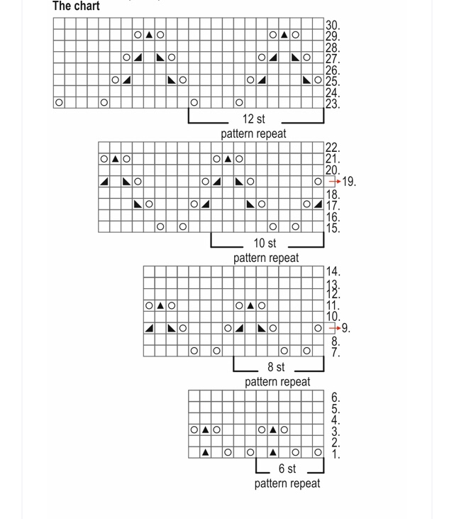 Lav il f 7 dello schema,2 m aumentate ad ogni rip , 128(136)136(144) m sul ferro