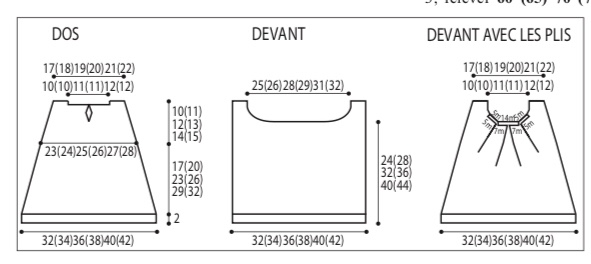 Rip questo f di dim ai ferri sul dir del lav altre 5 volte —(12, 14, 15, 19) m. Continuare a lav fino a 32,5 cm ( 35- 37,5- 40) finendo con un f sul rov del lav.