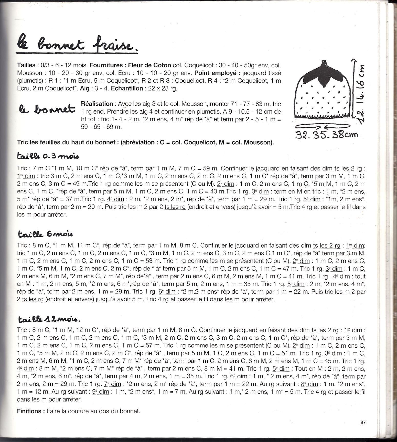 A 13 (16 – 19) cm per il bordo dello scollo,lav, : 2 m.dir., 29 (31 – 33) m. p fantasia poi il resto come fatto precedentemente.