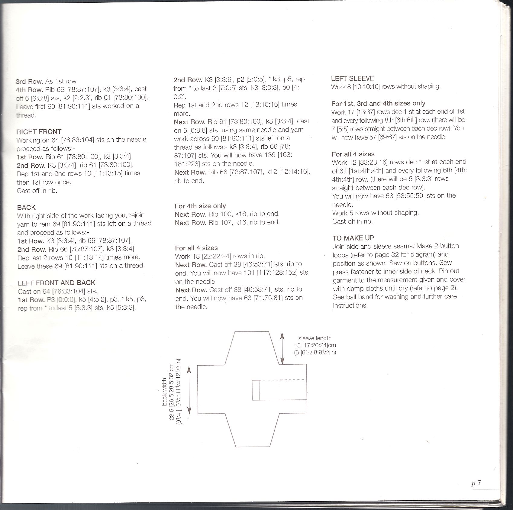 a 11 cm(14-169 chiudere ai lati ogni 2 ferri.1 volta 2m e 3 volte 1m, poi chiudere le m rimaste.