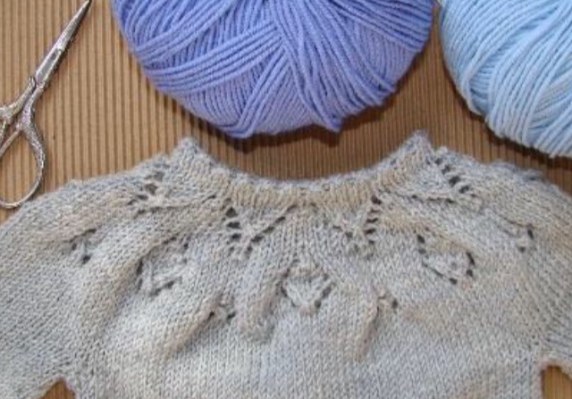 Scollo f succ:chiudere 11 (12) m. dir fino alle ultime 3 m. 2 ass,1 dir . **Cont diminuendo 1 m al bordo del raglan, come fatto prima e allo stesso tempo dim 1 m allo scollo nei succ 3 ferri .