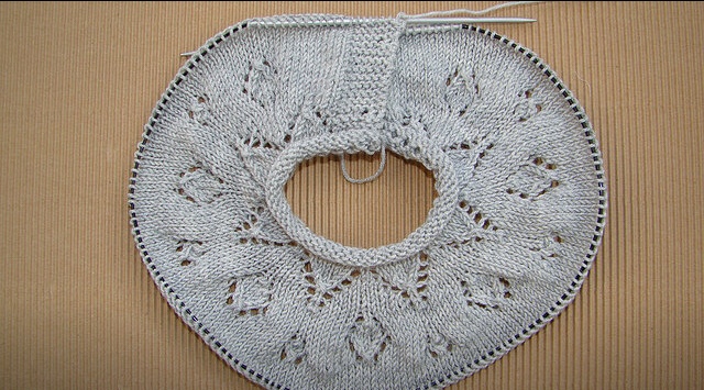 Rip questi 14 ferri altre 3 volte diminuendo 1 m al fianco ( alla fine del ferro) ai ferri 7-21-e 35 :40(43) m