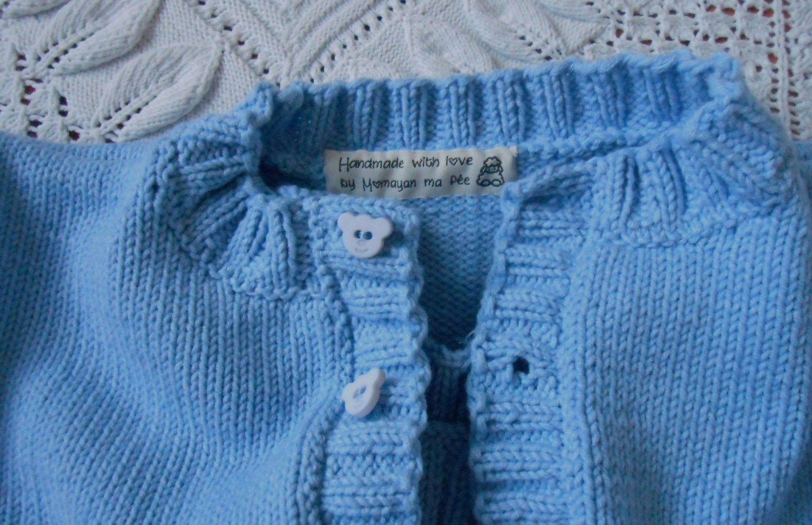 Lav un f in blu a m rasata dir e ., 2 cm a coste 1/1 sulle 75 – 81 m. rest. e chiudere le m morbidamente..