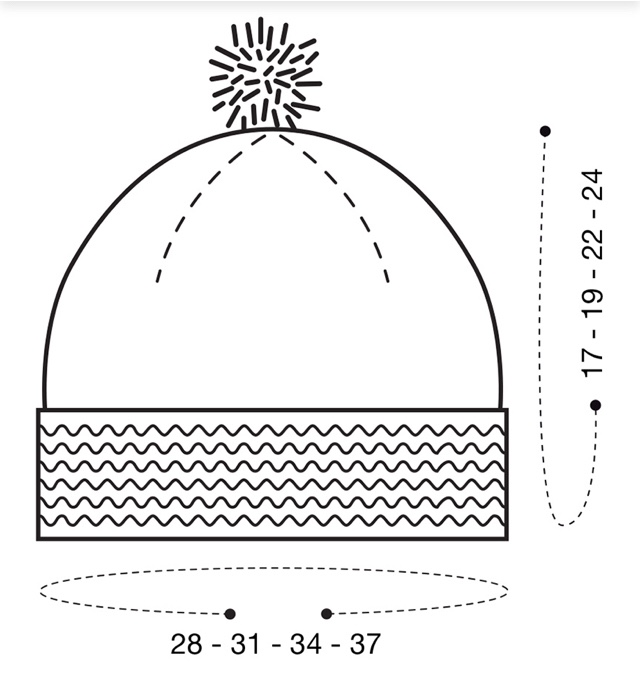 Come il dietro ma a 14 – 16 cm dal cavallo lav 5 cm a coste 1/1 e chiudere morbidamente.