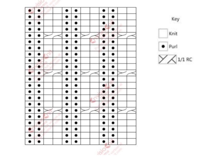 Continue with the cable pattern as described on rows 4-7, beginning with row 4: