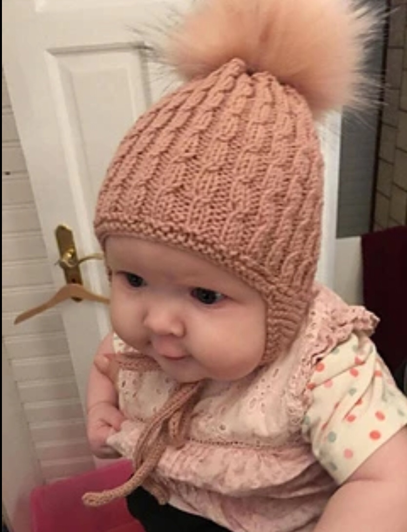 Cable over 9 stitches (C4B, k 1, C4F) equals 4.5 cm