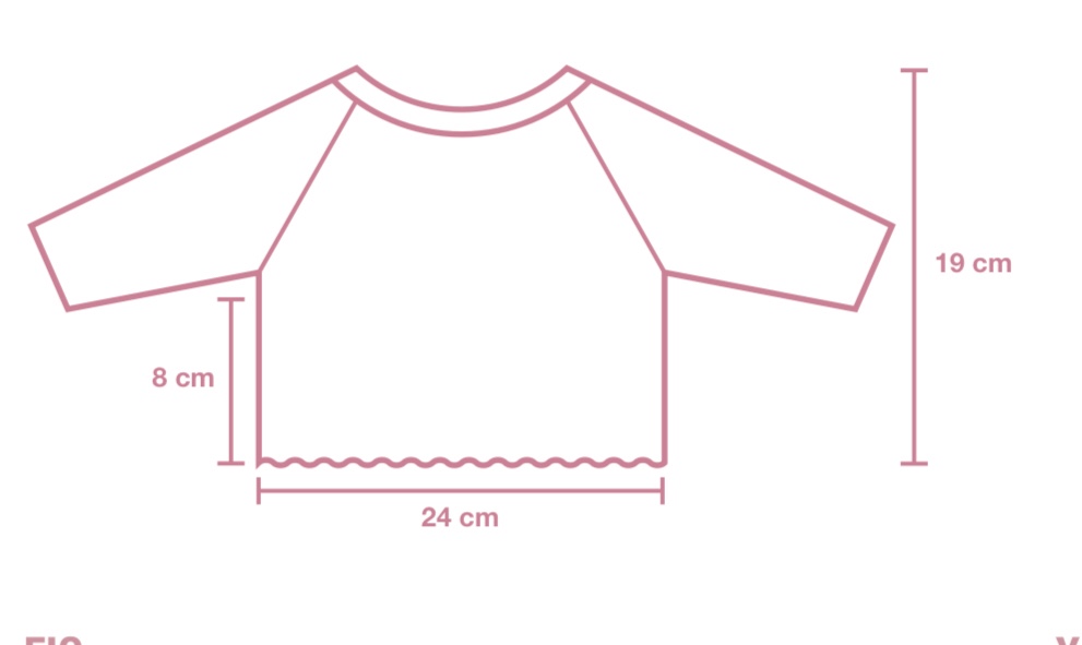 f 13: continuare a lav e diminuire 3m tra le maniche e il corpo ma solo per la taglia 3-6 mesi, e 1m per la taglia 12-18 mesi = 148 (150) 193 (196) 220 m rimaste sul ferro.