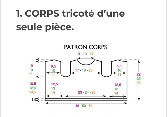 f 13: continuare a lav e diminuire 3m tra le maniche e il corpo ma solo per la taglia 3-6 mesi, e 1m per la taglia 12-18 mesi = 148 (150) 193 (196) 220 m rimaste sul ferro.