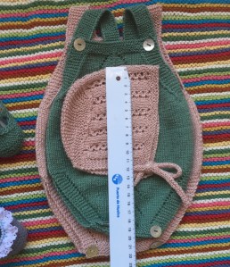 Row 35: [k 1, p 1] until the end of the row and at the same time decrease one stitch in the middle for the size 6-12 months only = 54 (56) 66 left.