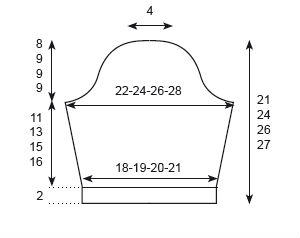 Cont ia m rasata su tutte le m e formare i fianchi diminuendo 1 m ai lati del ferro succ e ogni 6 ferri fino a che resteranno 115m. Cont dir fino a 24 cm ,finendo con un ferro sul rov del lav.
