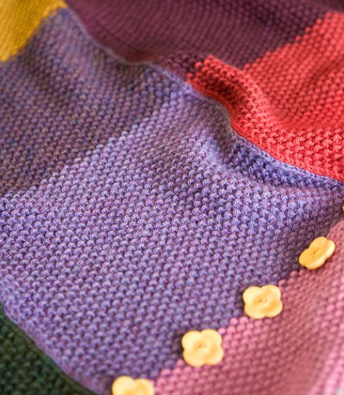 Con i ferri 6 e i colori scelti(righe di 4 ferri ciascuna e il bordo verrà aggiunto dopo) montare 45m(49-52-56-60) e lavorare 2 ferri diritti, continuare poi a m rasata fino a 29cm(30,5-31,5-33,5-35.5)-,quindi chiudere.