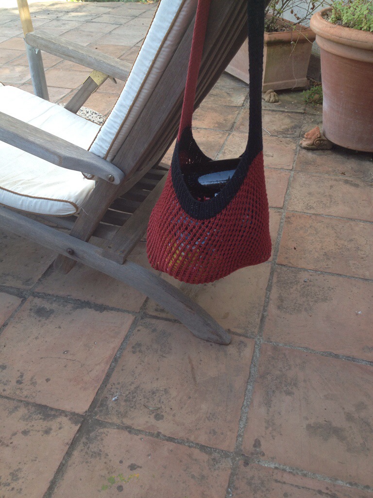 lav le restanti 54m(3 triangoli) a legaccio per 14 righe di legaccio(28 ferri) per il fondo della borsa (aggiungete altre righe di leg se lo ritenete necessario)