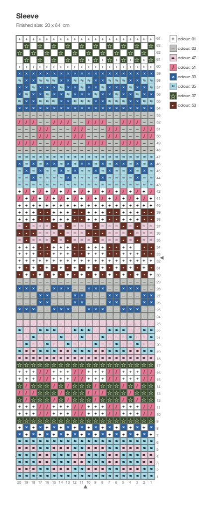 Diminuzioni per la parte alta della manica: chiudere: (5, 6, 8) [9, 11, 13] {15, 16, 18} m all’inizio dei succ 2 ferri—(50, 50, 50) [54, 56, 56, 58] {60, 60, 60} m.