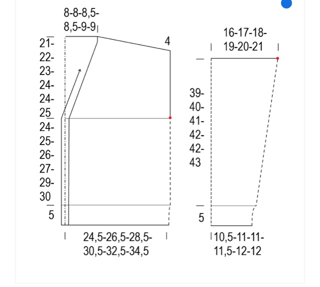 Quando avrete completato le dim di scalfo e scollo ,lav ancora sulle (10, 13, 14) [17, 18, 19, 20] {23, 24, 25} m rimaste fino a (18, 18, 19) [20.5, 21.5, 23, 24] {24, 25.5, 26.5} cm, finendo con un F sul rov dellav.