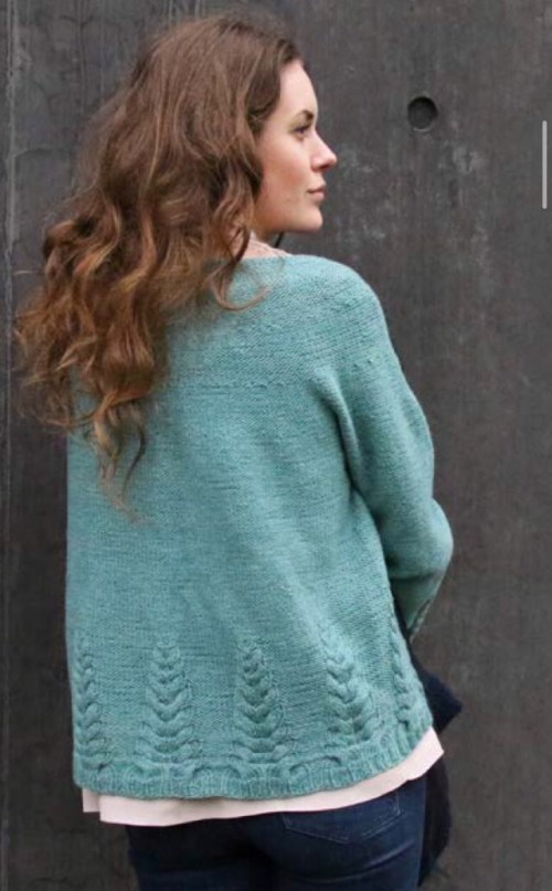 Cont diminuendo una maglia al fianco come fatto in precedenza, ogni 16 ferri (16-16-12-12-12) dalle precedenti diminuzioni per altre tre volte. 30 (33-36-39-43-46) m rimaste.