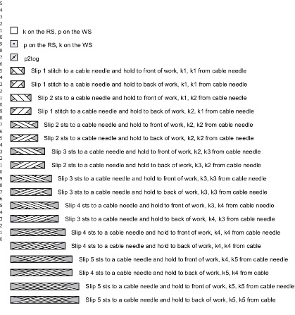 Per tutte le misure: ferro uno (diritto del lavoro) due diritti, due assieme ritorti, diritto fino alle ultime quattro maglie, due assieme al dritto, due diritti.
