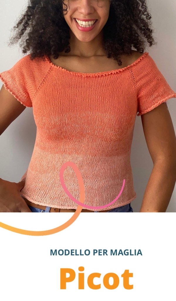 Questa maglietta è realizzata dall’alto verso il basso in tondo con i ferri circolari da 4 mm.