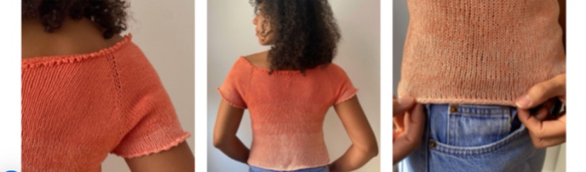 La maglietta è lavorata senza cuciture dall’alto verso il basso con ferri circolari. Si inizia dalla scollatura, poi si lavora lo sprone con aumenti raglan, quindi si dividono le maniche dal corpo e si lavora il corpo, per poi tornare a lavorare le maniche. La maglietta ha circa 5 cm di agio e è progettata per avere una taglia oversize con una forma squadrata. I pantaloncini sono lavorati separatamente, in avanti e indietro ( non in tondo quindi ) , con un leggero aumento ai lati per i fianchi. Non ci sono diminuzioni per adattare la vita. Le due parti saranno unite con una cucitura. Per completare i pantaloncini, viene lavorata una cintura in tondo che terrà il cordoncino. La lunghezza può essere personalizzata. Il modello indossa la taglia media.