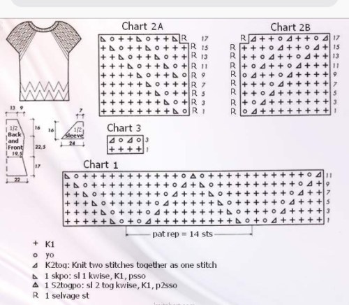 g di dim 2: * 1 dir, SSK, dir fino a 3 m prima del marker succ , 2 ass al dir,1 dir, sm, * rip altre 3 volte—8 m diminuite. Rip il g di dim 2 ogni 2 ferri per altre X (X, X, X, 18, 20, 16, 21, 21) volte—X (X, X, X, 246, 246, 248, 256, 262) m
