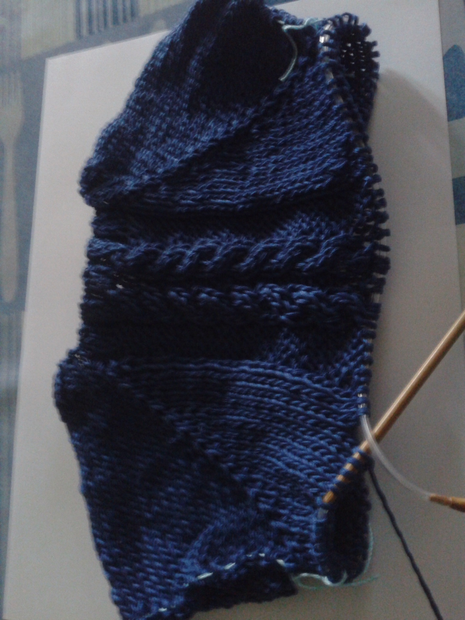 i a 24 cm dalla separazione e con i ferri 3 ho lavorato 8 giri a coste 2/2 ho chiuso lavorando a coste.