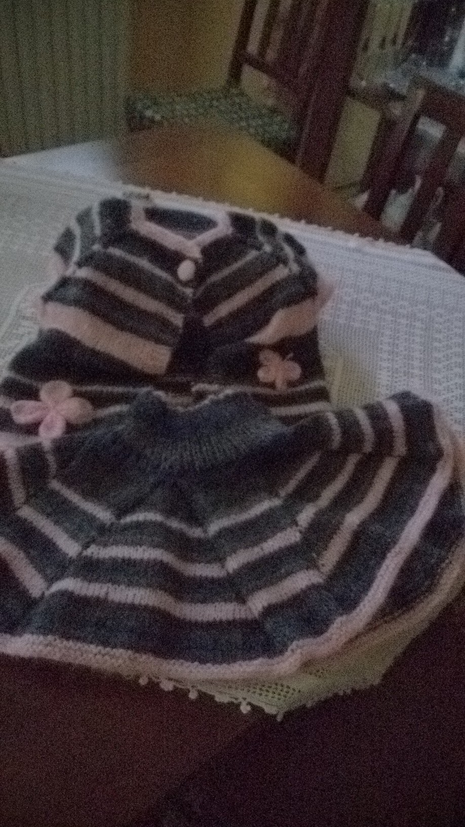 Mi arriva l’ultimo lavoro fatto dalla mia amica Grazia(amicizia iniziata… beh avevamo 11 anni..!) per la nipotina Alice, su un modello originale di.. la Maglia di Marica, naturalmente, e qualche lezione impartita al volo al telefono, o via mail,o davanti ad un caffè una domenica al Borghetto Flaminio..però che soddisfazione..!!!
