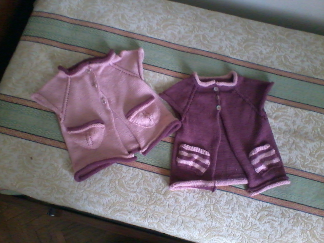 Laura mi ha mandato queste belle foto , di 2 golfini fatti per la sua bimba,Sofia, ben realizzati e anche molto ben fotografati.