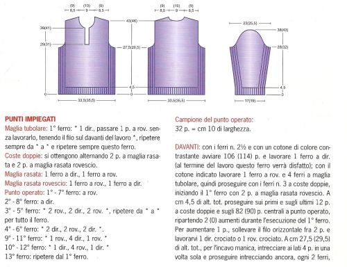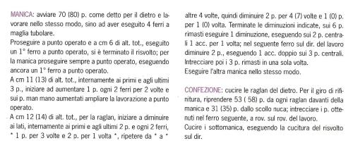 e contemporaneamente diminuire allo scollo, a 2m dal bordo ogni 2 ferri:10 volte 1m ,poi ogni 3 ferri:6 volte 1m.