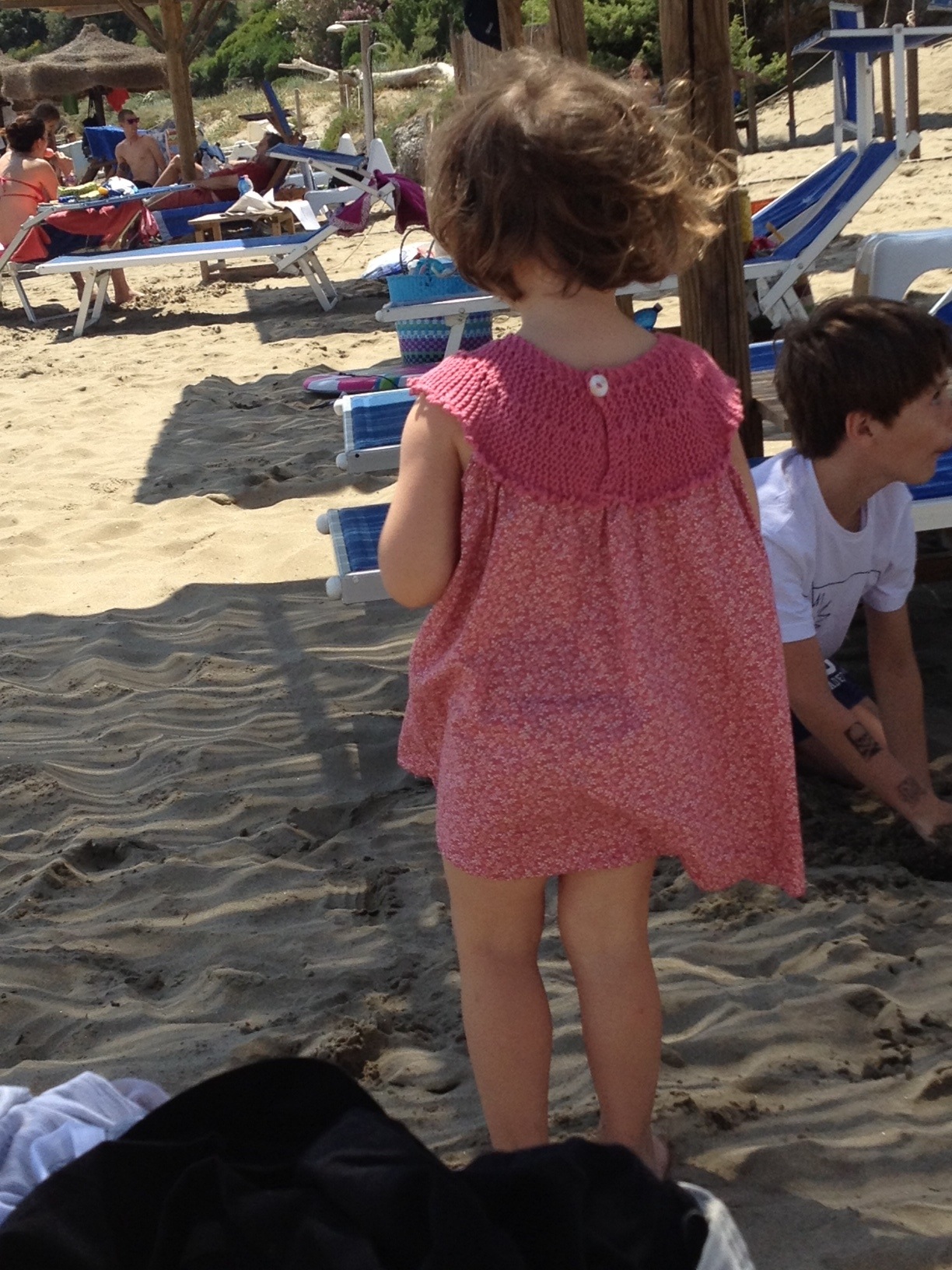 Modello già sperimentato in altre occasioni ; il modello base è molto semplice: un topdown con solo 2 m per ciascun davanti, alla fine si riprenderanno le m tutto attorno ( al dir del lav su ciascun davanti ogni 3 m ne ho saltata 1 mentre dalle spalle e dal dietro ho ripreso tutte le m) e ho lavorato a m rasata per circa 5 cm e ne risulta un bordo che poi si lascia arrotolare