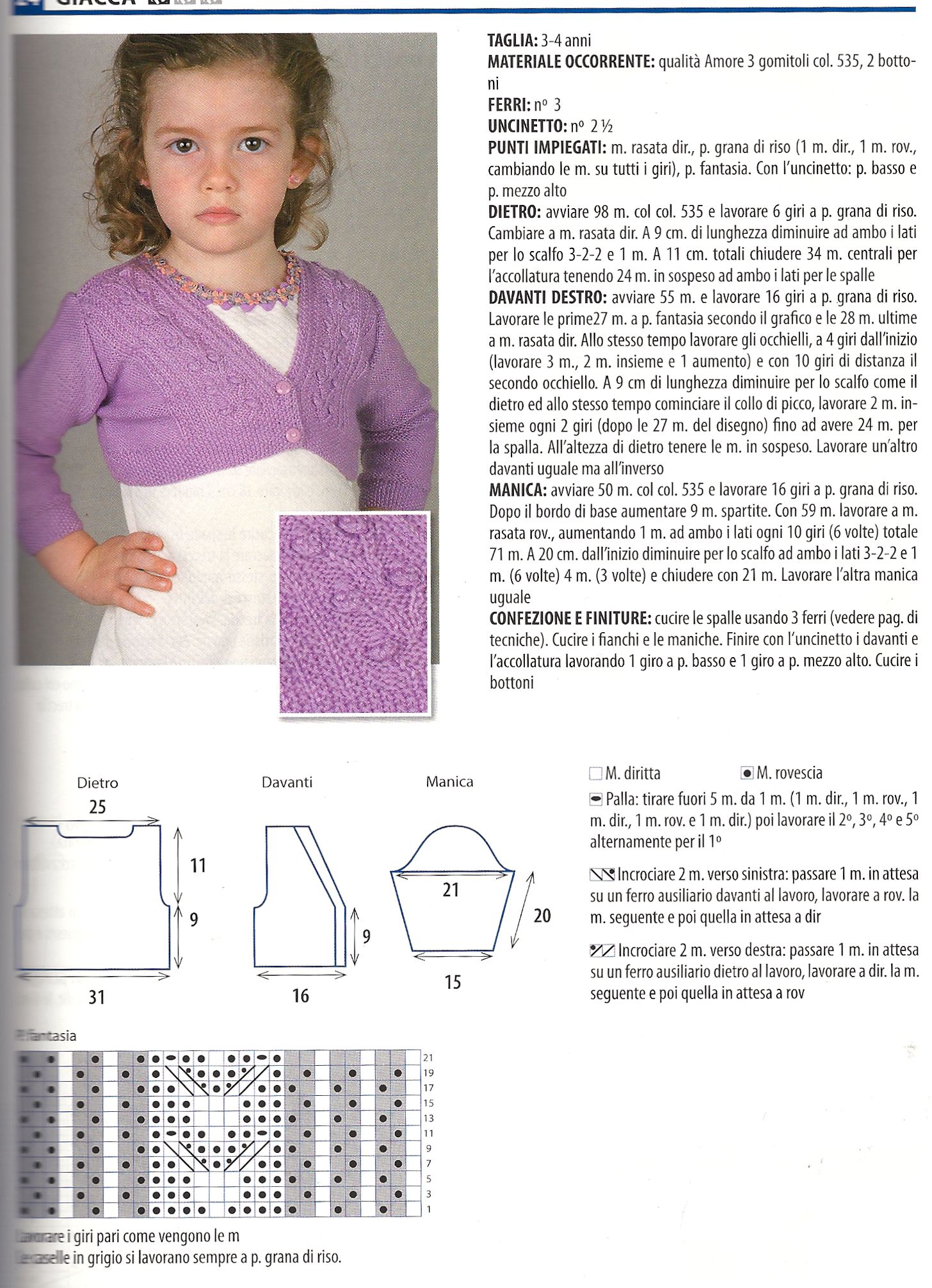 Ferro 2: 2dir,*2rov,2dir* rip fino ad avere 34 (38) 42 (46) m sul ferro di ds,mettere un segnapunto e lav il primo ferro del pannello delle trecce sulle succ 10 m mettere un altro segnapunto,lav a coste 2/2 e finire con 2dir.
