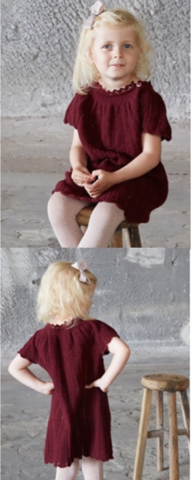 Il vestito si lavora senza cuciture dal basso. Il bordo pizzo dello scollo si lavora come chiusura del ferro dello sprone