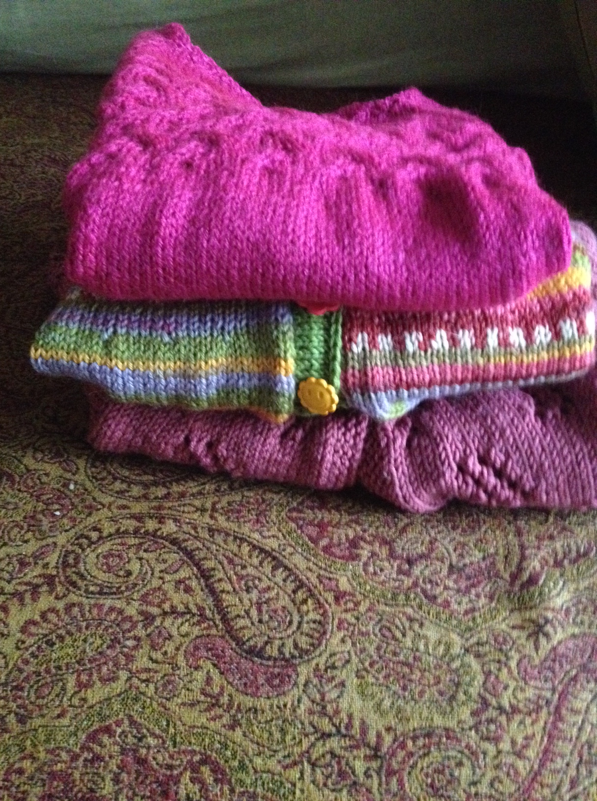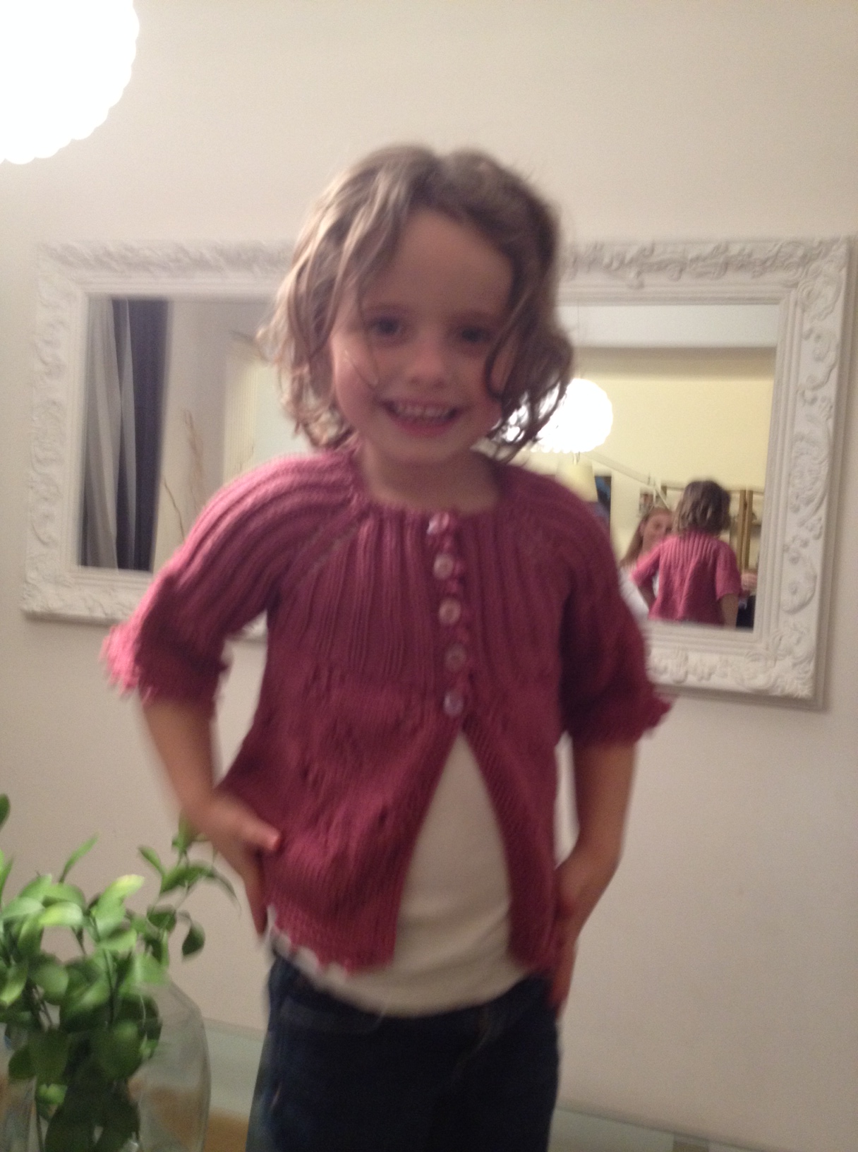 Sto preparando la spiegazione di questo cardigan, nelle diverse misure; mi sono accorta che devo anche adeguare le mie misure alla rapida crescita di Flavia, mi sembra che le stia piccolo..