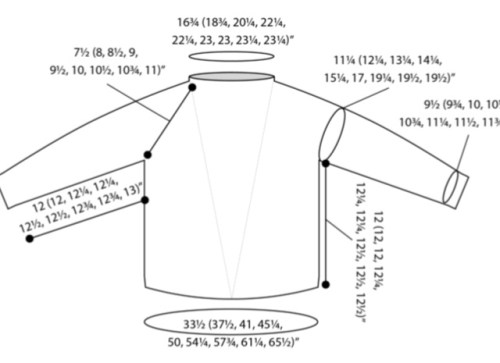 Si lavora topdown dal collo tutto assieme con aumenti ai raglan,e potrete provarlo nel corso della lavorazione . per ottenere le misure desiderate
