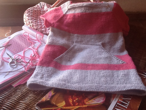 Altro esperimento, per arrivare a lavorare senza cuciture ,nemmeno per la tasca, che è stata lavorata a scendere ,raddoppiando le maglie, lavorando separatamente la tasca e l’abito e riunendo tutto alla fine.spiegazione,qui:https://lamagliadimarica.com/2013/09/03/primo-lavoro-invernale-il-topdown-con-tasca-lavorata-assieme/