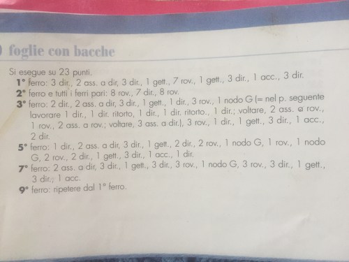 F succ ( dir del lav):1 rov,”1 rov,passo 1 m,due dir,accavallo,1 rov,passo 1m,due dir,acc,1rov,passo 1m,due dir,acc” 2ass al riv e giro il lav