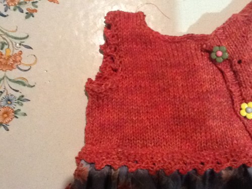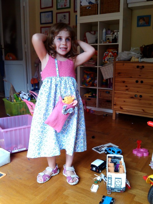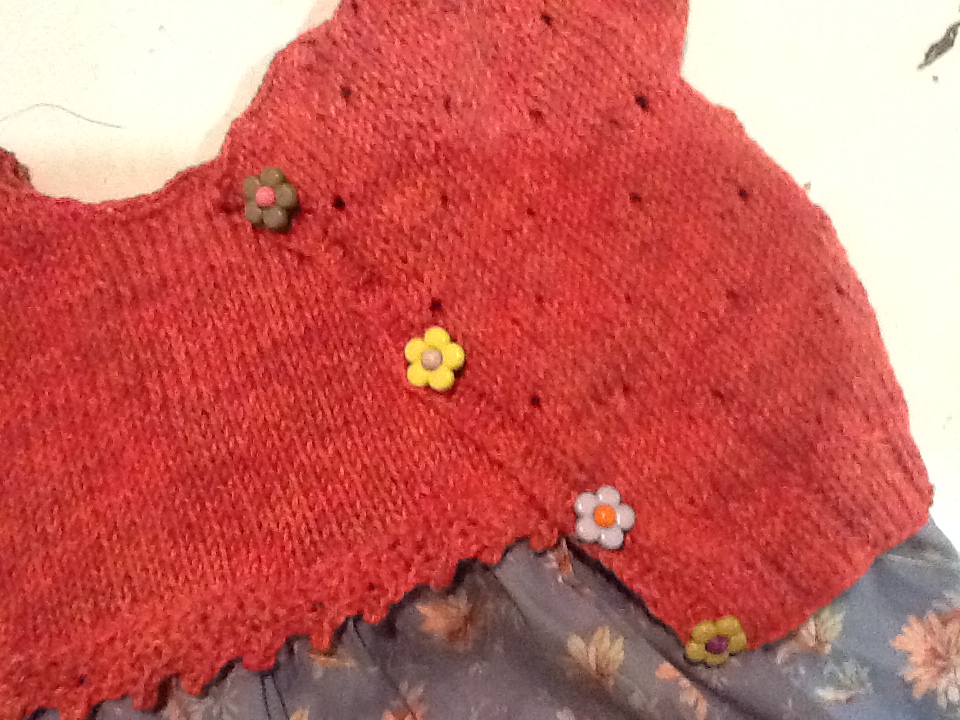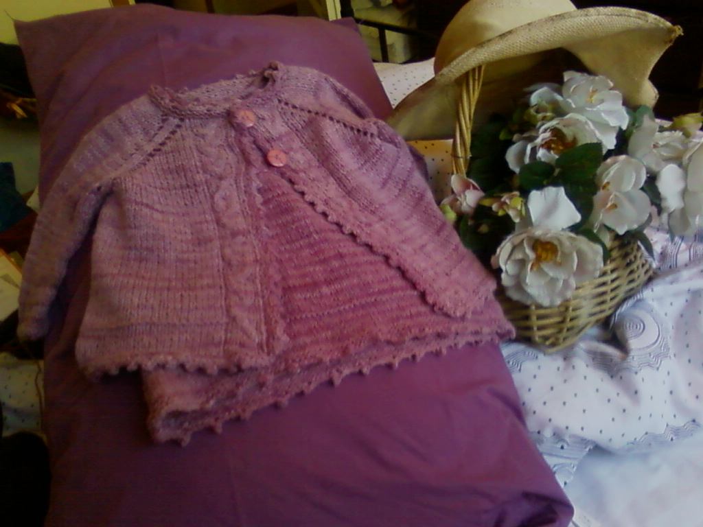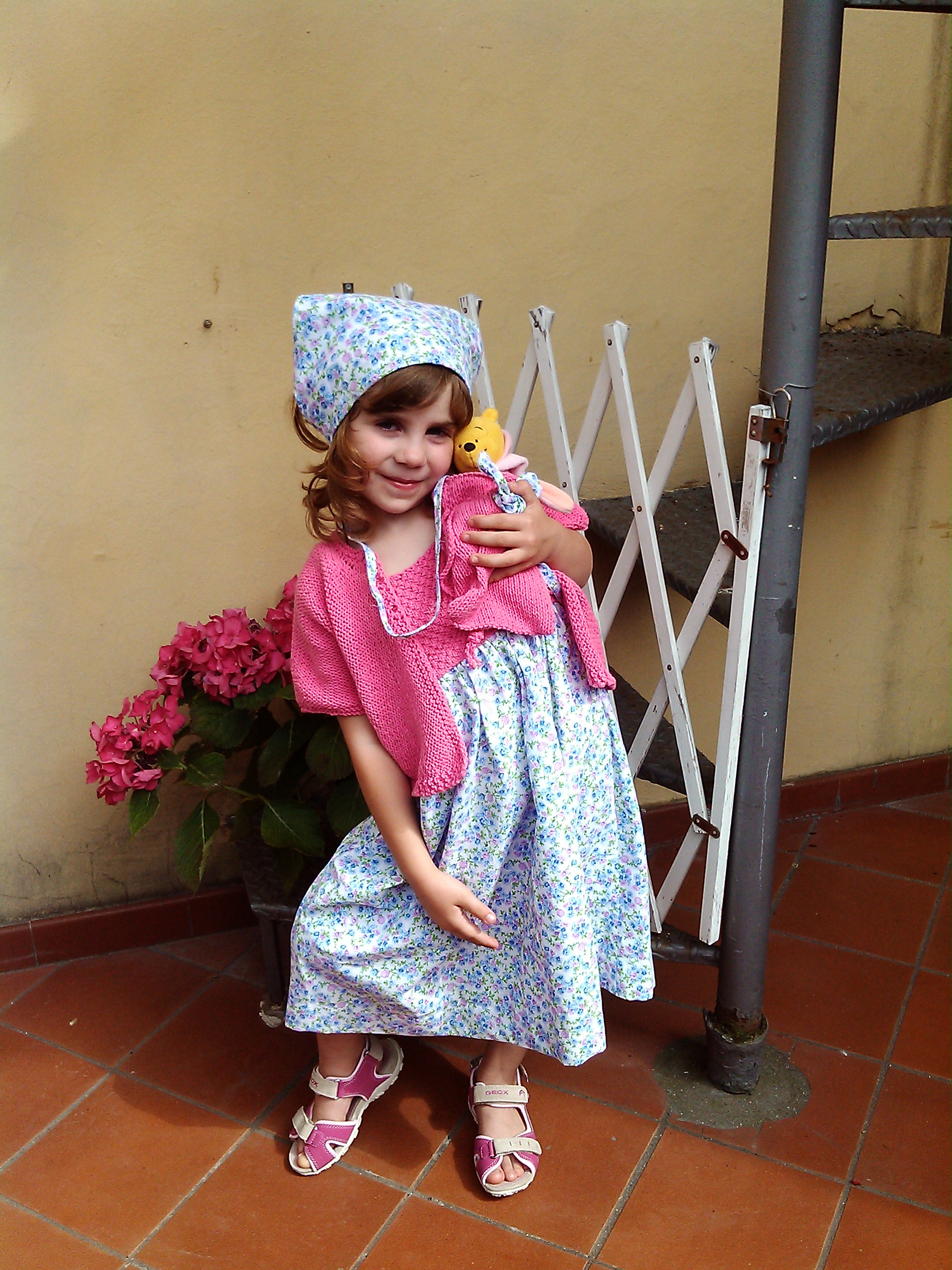 Non l’avevo ancora lavorata e così me la sono riportata a Londra in quest’ultima occasione ( sapete che noi drogate non ci facciamo mancare nulla..): hai visto mai ,ho pensato, che comincio un lavoro e poi non mi basta la lana.. e infatti ho iniziato un cardigan per Flavia(ça va sans dire..) e poi me ne è avanzata ancora per uno scamiciatino da abbinarci.