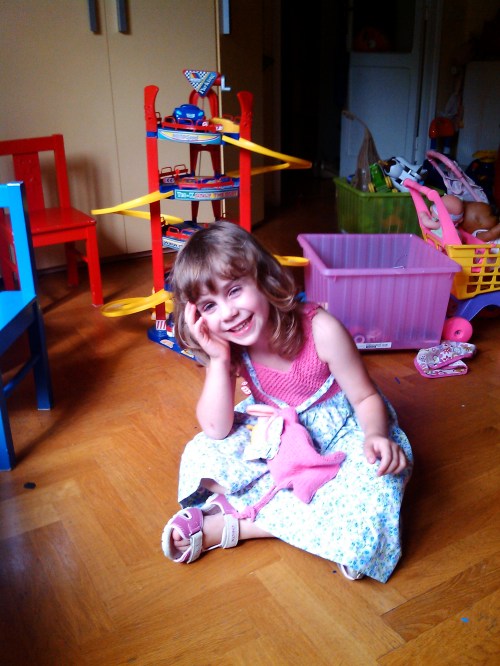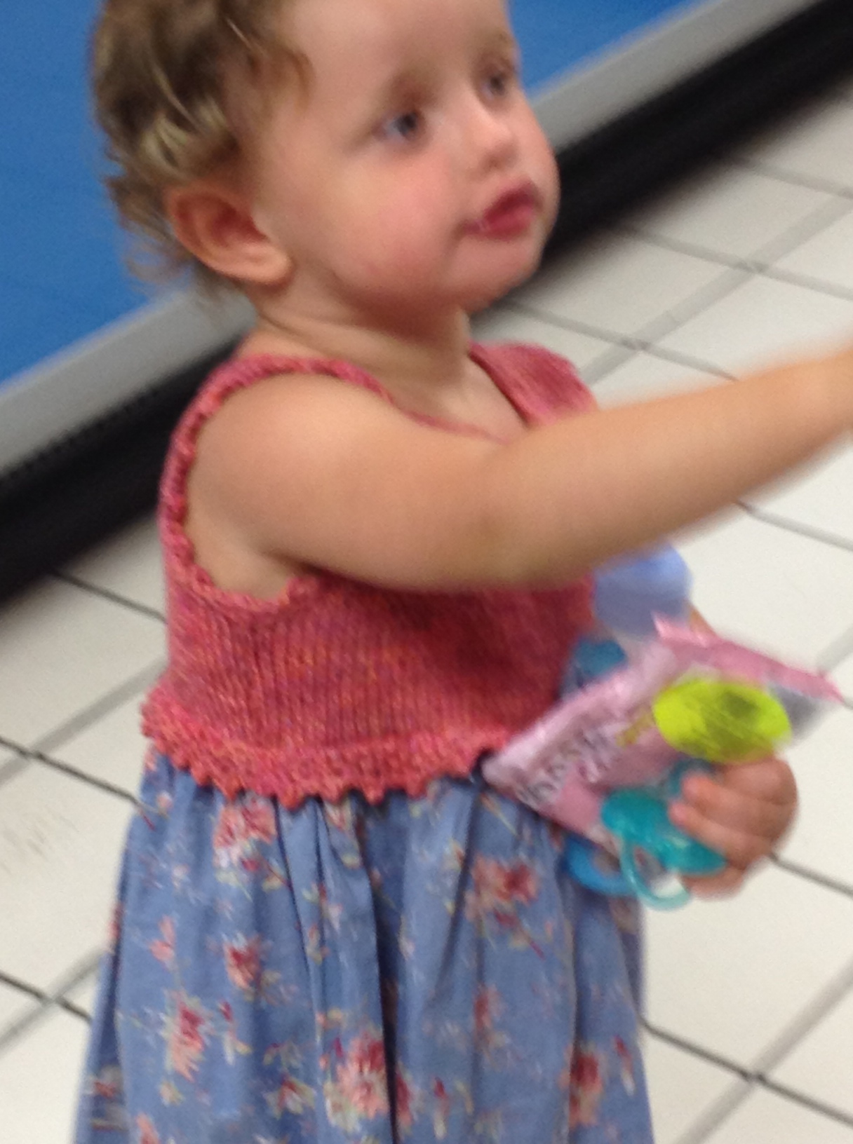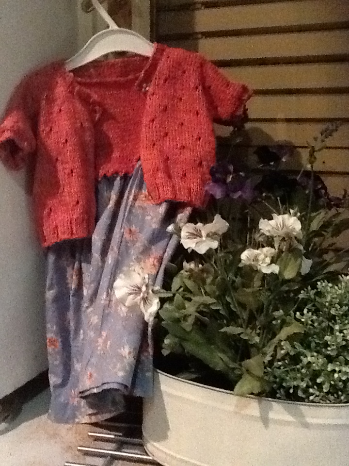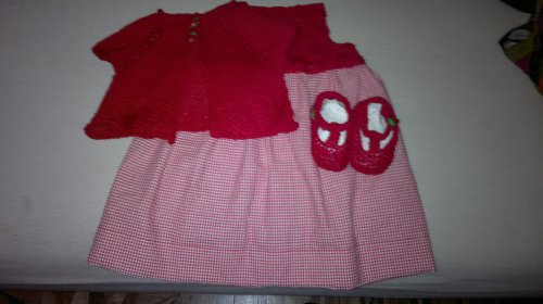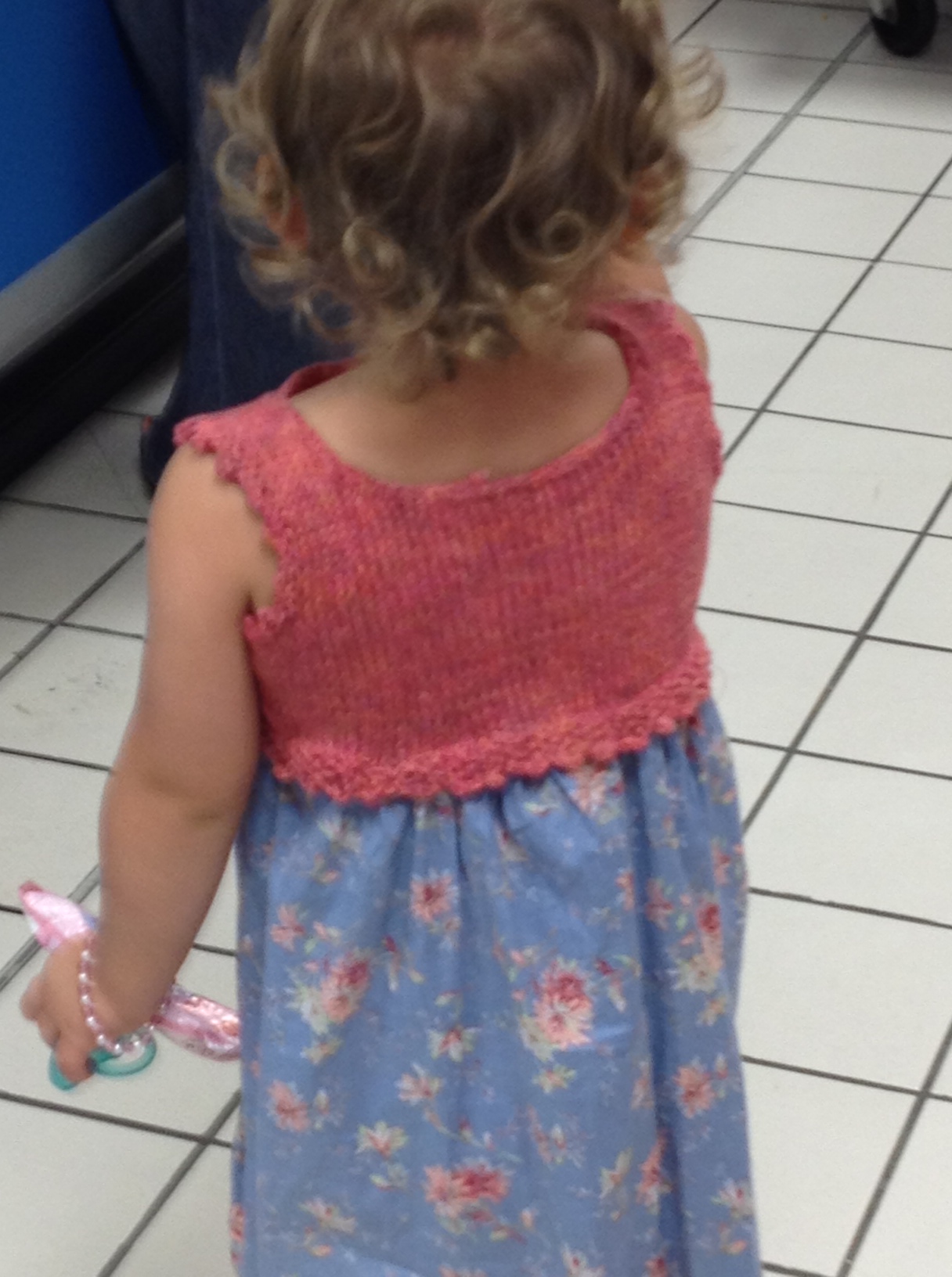Non l’avevo ancora lavorata e così me la sono riportata a Londra in quest’ultima occasione ( sapete che noi drogate non ci facciamo mancare nulla..): hai visto mai ,ho pensato, che comincio un lavoro e poi non mi basta la lana.. e infatti ho iniziato un cardigan per Flavia(ça va sans dire..) e poi me ne è avanzata ancora per uno scamiciatino da abbinarci.