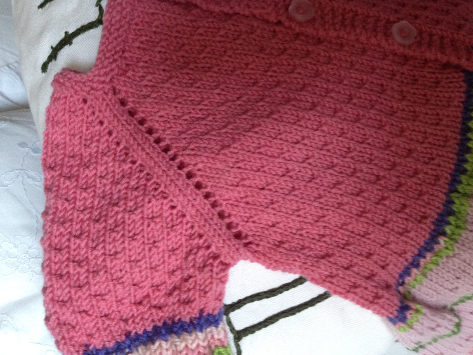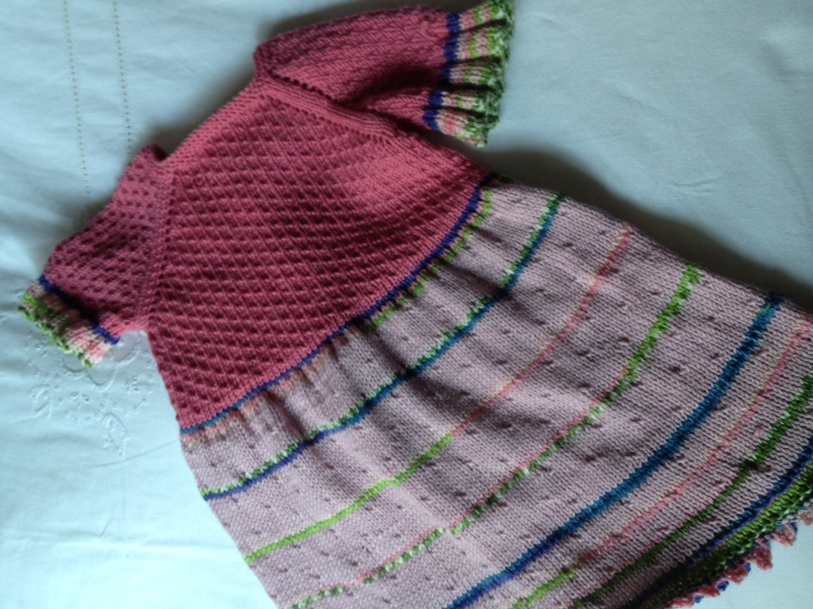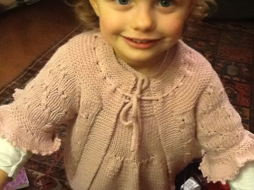 Questo era il cardigan finito 3 gg fa a cui abbinare il vestitino, so che sembrerà uno ..zucchero filato,..ma vedremo