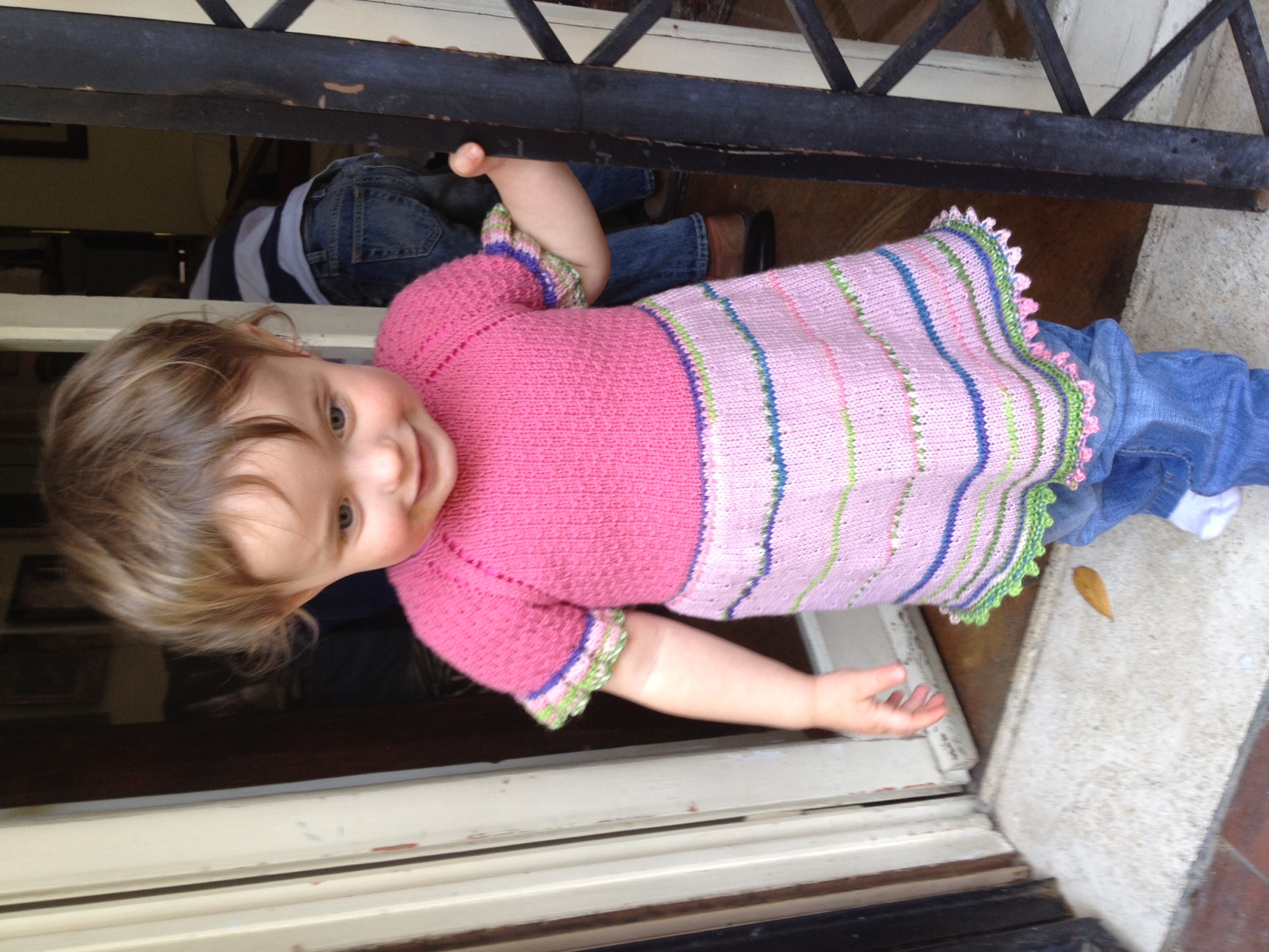 e un saluto da Flavia! a cui ho fatto..centinaia di golfini ma pare che questo sia il preferito!dovrò rifarlo con misure più attuali..