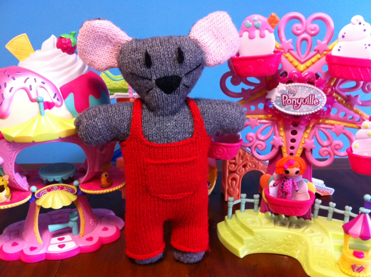La Peppa in questione è alta 28cm, e si lavorerà con ferri n 3; occorre quindi del filato rosa chiaro per il corpo e rosso per l’abito e qualche gugliata di filo nero per le scrpe, rosso acceso per i pomelli, del bianco per il fondo dell’occhio, potrete fare tutto con una catenella all’uncinetto da cuire arrotolata a spirale, ma penso sia più semplice ritagliarle tutto dal panno.