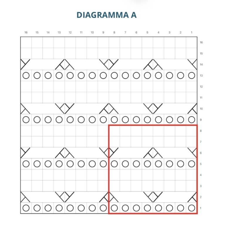 Attenzione! Quando lavori sul lato diritto, il diagramma si legge da destra verso sinistra, mentre