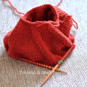 Lav 2 cm e dim una m ai lati del marker in questo modo: Quando restano tre maglie prima del marker passare una maglia lavorare la maglia successiva accavallare la maglia passata sulla maglia lavorata, un diritto, passare il marker , un diritto, lavorare due assieme al dritto.