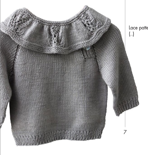 À 10 cm di altezza del ( 13 per 6 mesi)raglan : mettere in attesa le m dei davanti e del dietro e lav le m delle maniche per 10/11 cm a m rasata finendo con un cm a legaccio