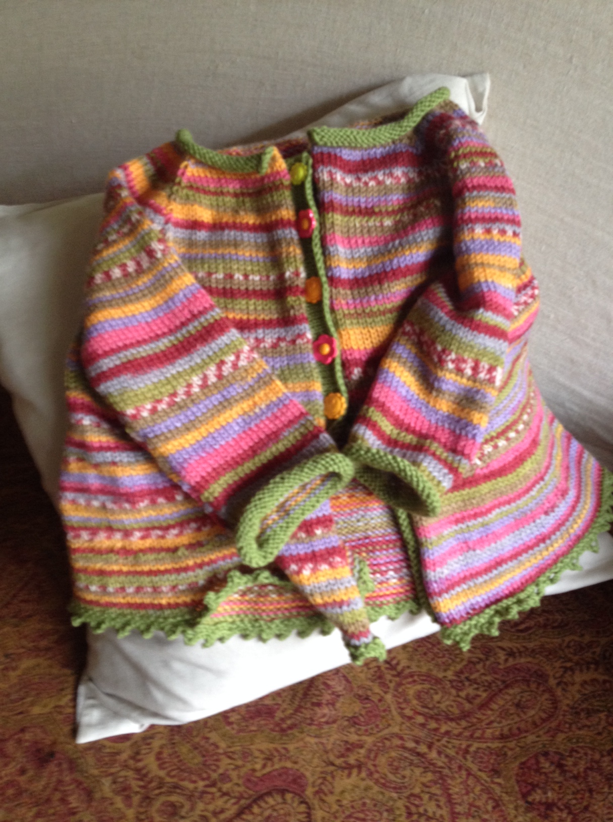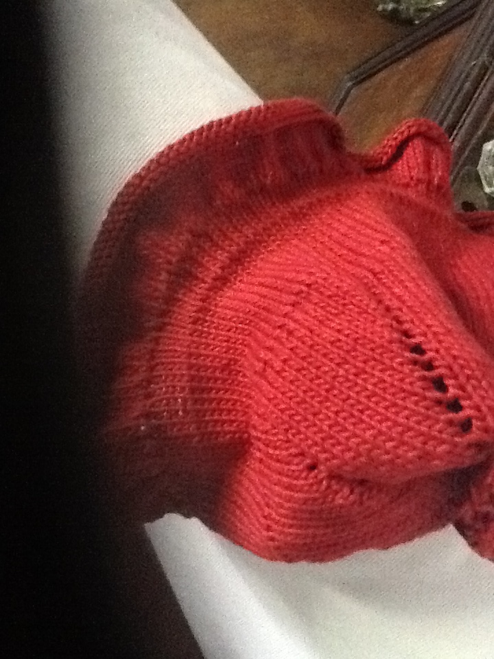 Al giro succ lav “1 dir, 1 aumento intercalare” (oppure lav ogni m 2 volte)per tutto il giro ; proseguire sulle m ottenute per qualche cm, sempre lavorando a m rasata,poi chiudere (oppure lav 3 giri a legaccio poi chiudere)